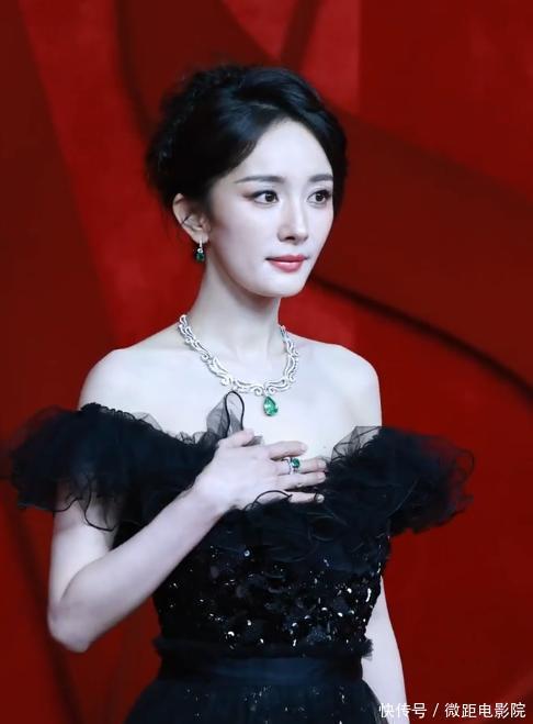 而且跟以往杨幂一字肩的长礼服比较起来,也算是大的突破。