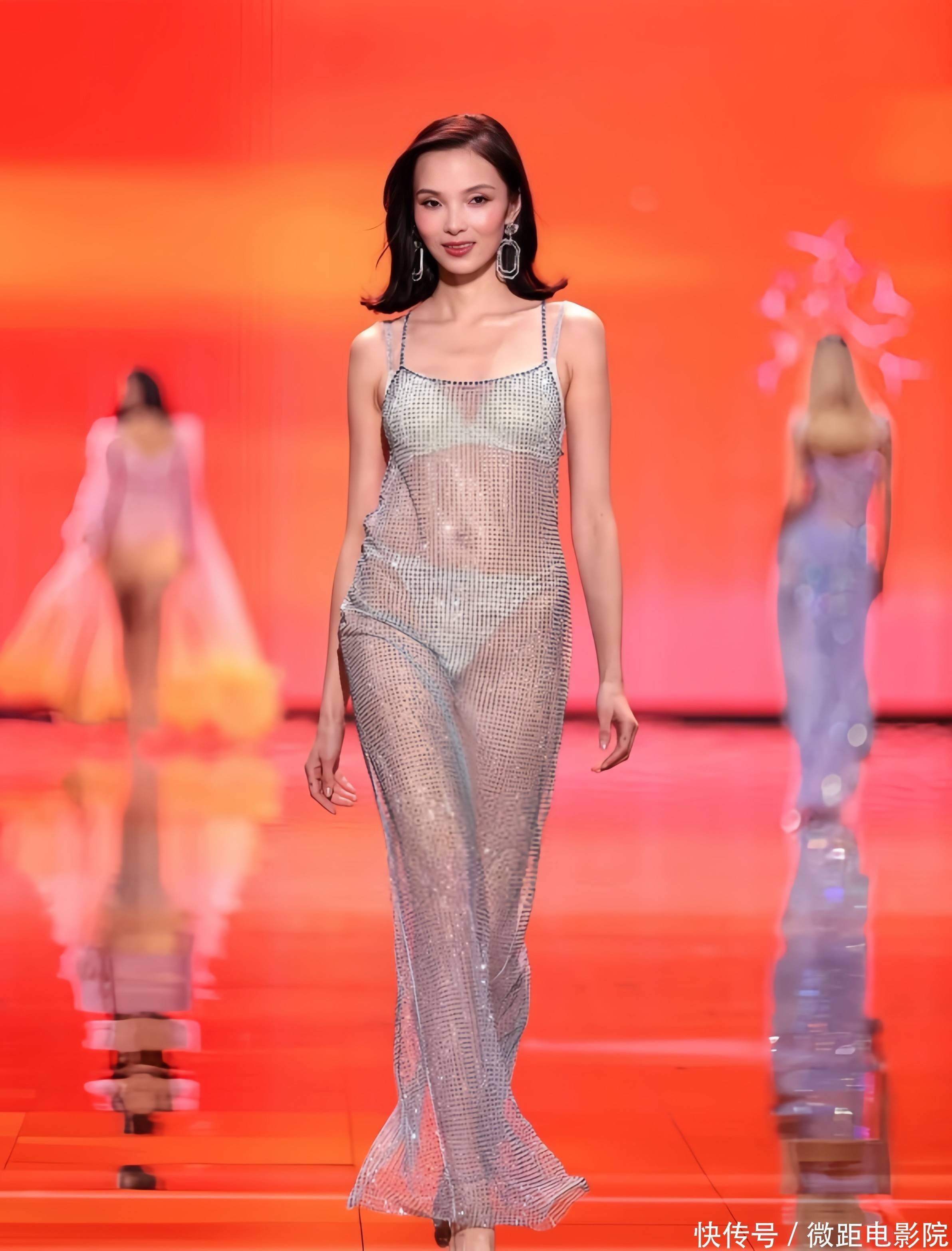 银色透视水钻礼服贴在身上,里面只穿肉色内衬,四肢的骨头轮廓清晰可见。